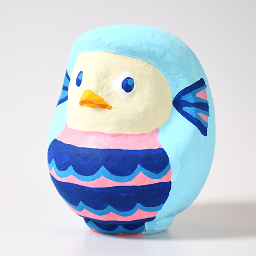 「コロナが早く落ち着きますように」という願いを込めて、色をパステルカラーでまとめて可愛らしいアマビエダルマにしました。