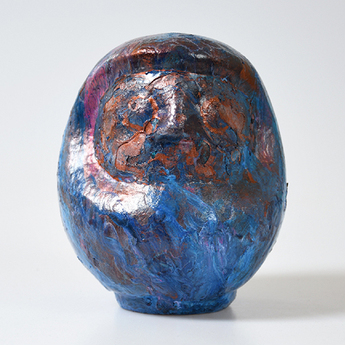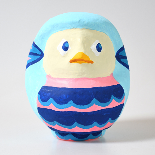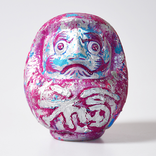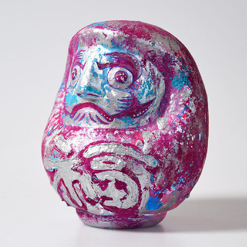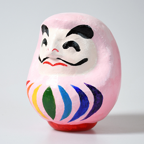 本来、達磨大師がモデルになっているが、自身が女性であることから女性らしいダルマを制作したいと思った。