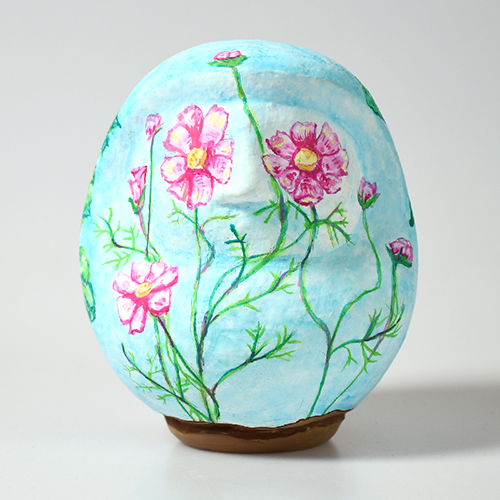 人々の祈りが花を咲かせるように、このだるまに私自身の祈りを込めました。