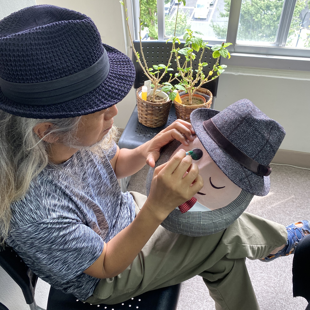 そして顔の部分は蝶の柄を顔のパーツに見立てて付けた。