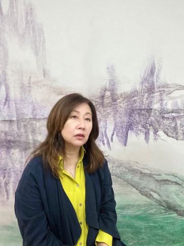 作品との偏狭的とも言える関わり方から視点を移行させ展開していくきっかけとなったのが2015年に行ったロサンゼルスでの作品発表であり、初めて訪れたかの地の場景を俯瞰的に眺めていた自分を「雲間から垣間見る」日本美術の伝統的な引き視点を用いて可視化するインスタレーションでした。