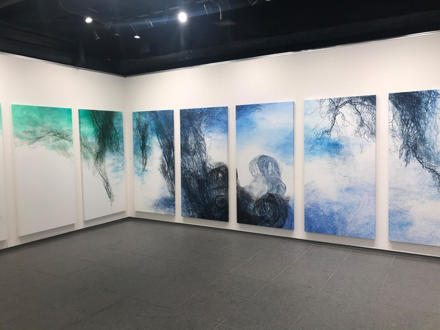 1800×900×40mm×10枚 和紙に水性木版、パネル装 (2021年6月個展 – Hydrosphere – 展示風景)