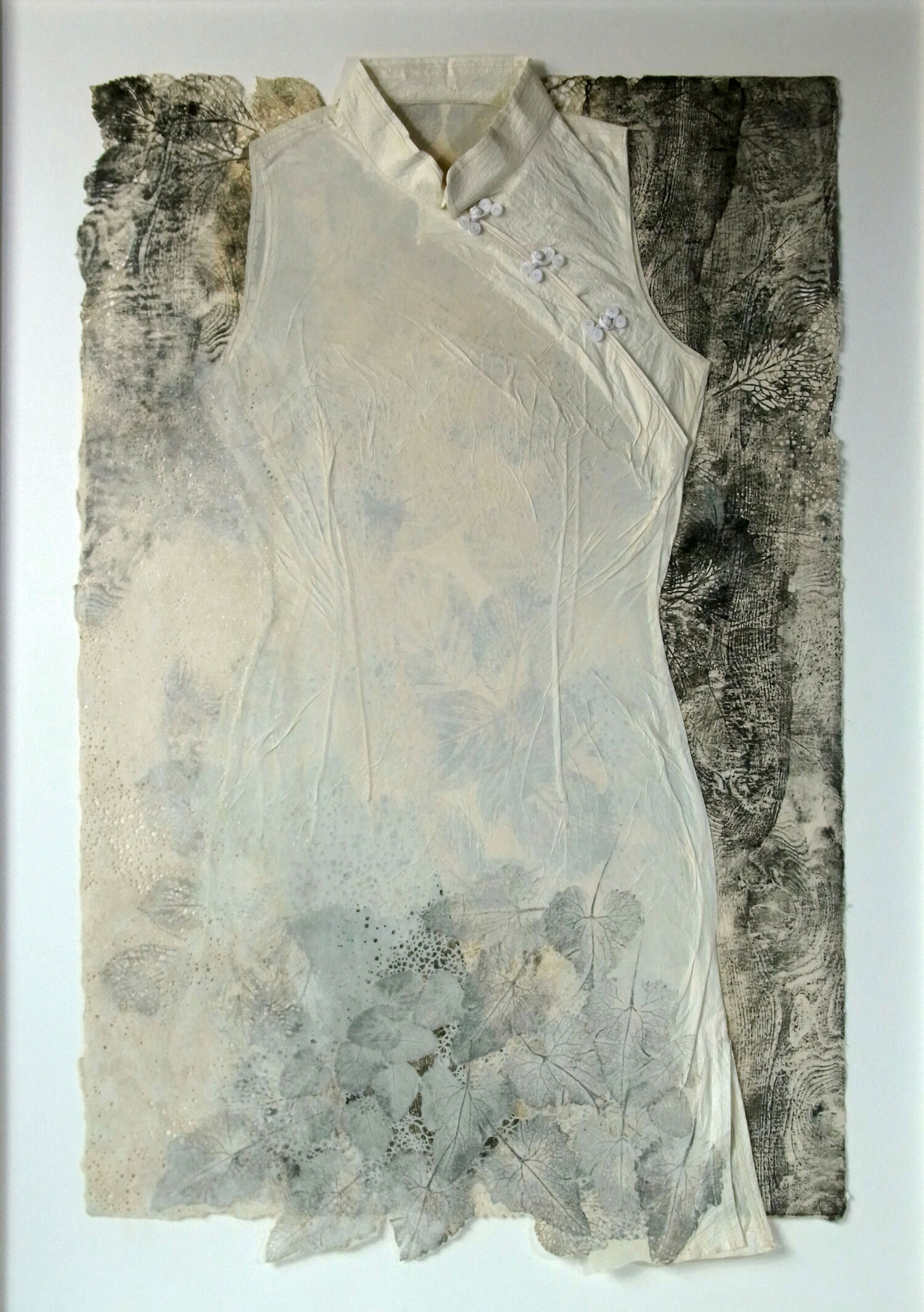 紙衣、和紙に水性木版、コラージュ、モノタイプ