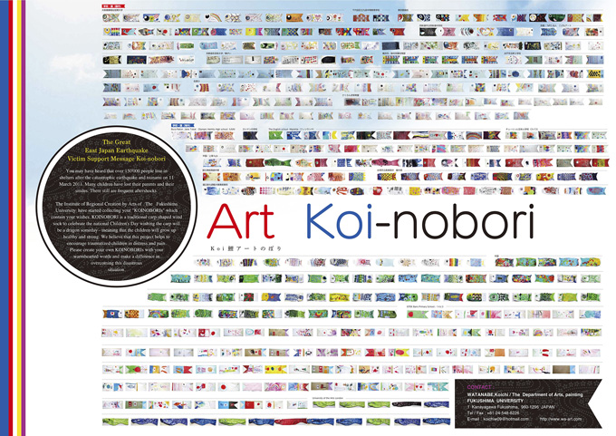 浅井信好、ウルトラマン、開発好明、五味太郎、笹川ひろし、しでかすおともだち、田澤友伸、長澤伸穂、吉澤美香 宇田秀士(奈良教育大学)、武谷大介(カナダ)、I,CULTURE/モニカ・ヤクビアック(ポーランド)、Den Frie Center for Contemporary Art in Osla(デンマーク コペンハーゲン)、ASSOCIATION GANBALO「GANBALO & KOINOBORI ART PROJECT」(フランス パリ)、Lil'art(フランス リラ)、DAICHI Capsule + FUKUSHIMA ART KOINOBORI(カナダ)、片岡千陽(ドイツ ザイフェン)、菅陽子(東北財経大学)、谷口恵/大連日本語教師会(中国、大連)、徳雅美/California State University, Chico(アメリカ) 栗原小巻、相笠昌義、伊藤公象、伊藤知香、川口起美雄、河口龍夫、館形 比呂一、椿昇、中林忠良、奈良美智、西村陽平、上田美江子、八谷和彦、増田聡子、三沢厚彦、宗像利浩、ヤノベケンジ、艾沢祥子、飯沢耕太郎、ときたま、大友良英、De+LAX、小馬崎達也、HOMEMADE家族、やまだひさし、和合亮一、興水紫石、石川浩子、伊達達也、大畑いくの、小楠佳子、笠原広一、門崎桃子、カワシマトモエ、工藤綾、齋野悠、サガキケイタ、佐藤久美子、Three、諏訪敦、鈴木美樹、滝沢おりえ、谷口千恵美、星久美子、前沢知子、真下弥生、ややまひろし、横井裕子、加賀田恭子、大藤恭一、栗林孝之、菅原美佐子、岡部昌生(札幌大谷短期大学)、青山ひろゆき(東北芸術工科大学)、田中望、鈴木隆史、小澤基弘(埼玉大学)、岸本吉弘(神戸大学)、林剛人丸(筑波大学)、母袋俊也(東京造形大学)、河口龍夫(京都造形芸術大学 美術工芸学科総合造形)、水野哲雄(京都造形芸術大学 芸術学部こども芸術学科)、NPO法人 こどもアート(京都)、谷口広樹(東京工芸大学)、野沢二郎(明星大学)、水島尚喜(聖心女子大学)、茂木一司(群馬大学・群馬明和短期大学)、秋岡美帆(大坂教育大学)、丁子かおる(福岡教育大学)、大阪健康福祉短期大学(学長:秋葉英則 准教授:井口和子)、落合良美(千代田区立九段中等教育学校)、眞野希代子(四街道市立四街道中学校)、甲斐めぐみ(横浜市 森村学園初等部)、森田聡(水戸市立五軒小学校)、福島市佐原小学校、福島市さくらんぼ保育園、ギャラリーシエル、吉成智子、高橋みどり、大古瀬和美、田中昇(川越市美術館)、世田谷美術館ボランティア鑑賞リーダー、京都 南代村役場内 南代キッズバレーボールクラブ、チューリッヒ日本人学校(スイス)、上海fujis(中国)、国立南投高級中學(台湾)、台湾市立長億高中(台湾)、李靜芳(國五彰化師範大學美術學系)、徳雅美(カリフォルニア)、C,kanazaki(ニューヨーク)、Stancy & Anna(ロンドン)、H.Mafuji(エジンバラ)、V.Charles(ロンドン)、Jon Cairns,Faith Edwards(ロンドン)、Madeline Widerberg(ロンドン)、星宮ひろし(ロンドン)、Zero Reiko Ishihara(ドイツ)、Baebara Greul Aschanta(ドイツ)、Bob Lloyd(ドイツ)、Cordelia Heymann(ドイツ)、Costa Bernstein(ドイツ)、Jugrgen Krause(ドイツ)、Martin Hakan Weigl(ドイツ)、 Martin Hakan Weigl(ドイツ)、Max Weinberg(ドイツ)、Aldona Szykuiska/II LICEUM OGOLNOKSTAECACE(ポーランド)、Ayşe OZBAKI GÜLER(Kirikkale Universyty/トルコ)、Lorena Hamaguchi(ペルー)、Jorge Ismael Rodriguez(メキシコ)、Buca Raton jane Tobal Olympic Heirhts High school(USA)、The English school Mantrie(フィンランド)、Md Talikat(バングラディッシュ)、ほか多数