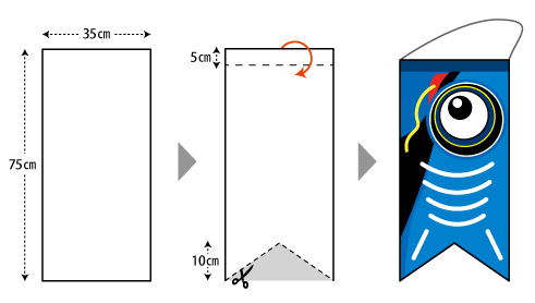 ● 「鯉アートのぼり」の大きさは、35cm×75cmです。