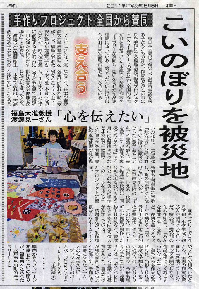 Koi 鯉アートのぼり プロジェクトは、月刊美術、月刊ギャラリー、教育美術、美育文化などの美術専門誌をはじめ、新聞やテレビ報道など、様々なメディアに紹介されてきました。